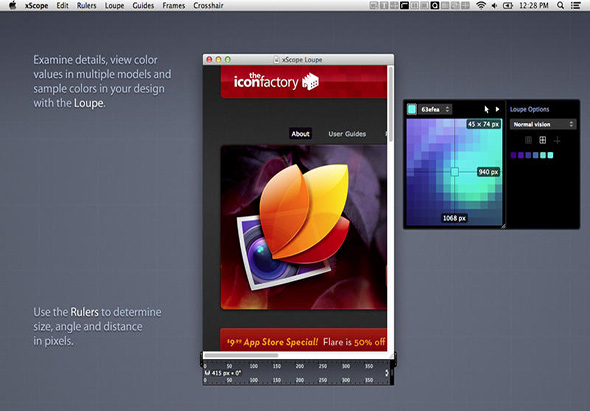 专为设计师和开发者打造的 xScope 是一套功能强大的工具集,能够完美满足屏幕图形与布局的测量、审查和测试需求。xScope 的工具悬浮于桌面窗口之上,可通过工具栏、菜单栏和/或快捷键快速调用。
