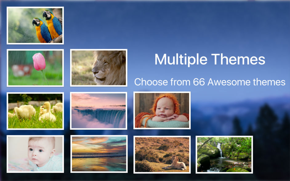 在Mac屏幕上体验挥动的旗帜,纯净的水墙,ripling河,沙滩,咆哮的狮子,甚至雨水滴。所有主题,图像和壁纸都是现场,动画和高清质量。