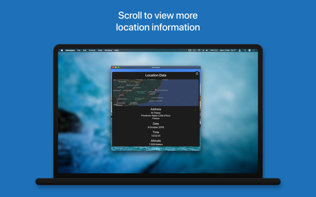 只需从你的照片库中选择一张图片,并在一个漂亮的卡片式布局中查看图片元数据。无论你是用手机、单反相机拍摄,还是在你最喜欢的照片编辑应用程序中创建图像,Metadata都会显示你的图像尺寸、DPI、文件大小、位置数据和设备信息。
