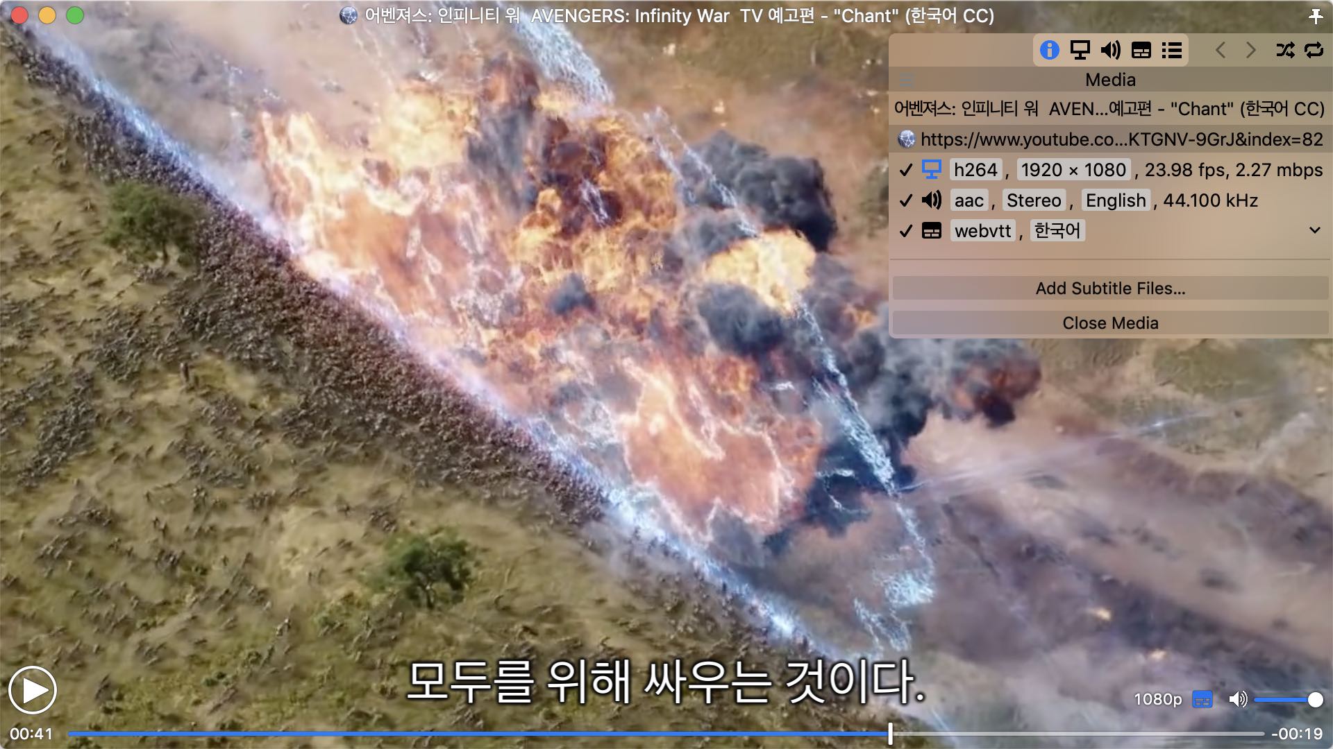 您可以选择质量,查看字幕,并使用所有Movist功能。