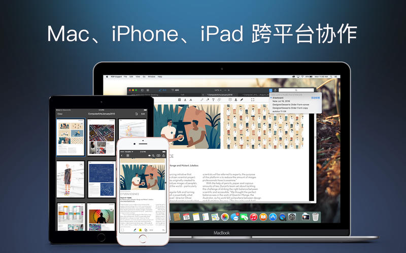 ** Mac、 iPhone、iPad 无缝 PDF 体验**