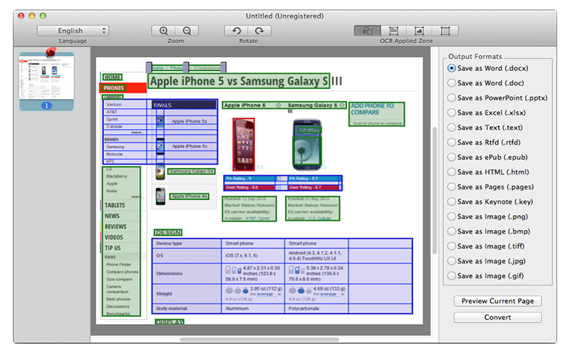 •将原生和扫描的PDF转换为可编辑的Word,Excel,Keynote,Pages,EPUB,PowerPoint,文本,图像等。