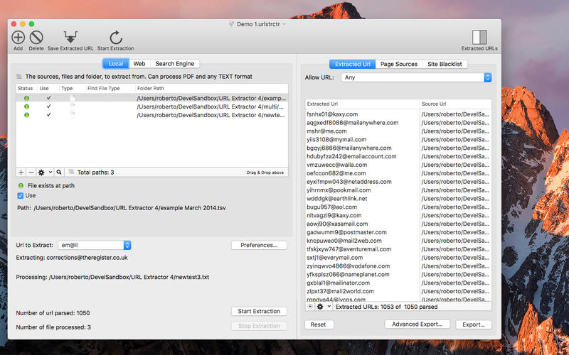 URL Extractor 是一款Mac平台的网络工具,URL Extractor是一款链接批量抓取工具,通过一个网址或是通过搜索引擎搜索一个关键字,该软件就能为我们抓取大量相关的网址链接和email信息。