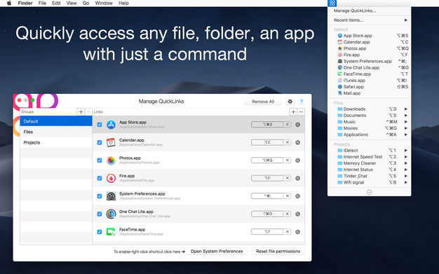 QuickLinks是键盘自定义快捷方式创建者的应用程序。可以为任何收藏或常用的文件,文件夹,文档,应用等创建快捷方式。