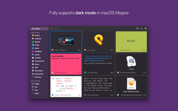 Pasta支持macOS Mojave的Light and Dark模式。这是所有人的最佳功能:)