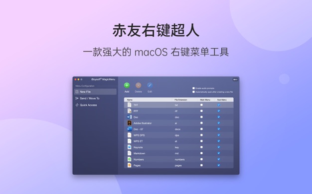 赤友右键超人是Mac系统下最好的右键菜单神器,可帮助自定义右键菜单,提高 macOS 上的工作效率。