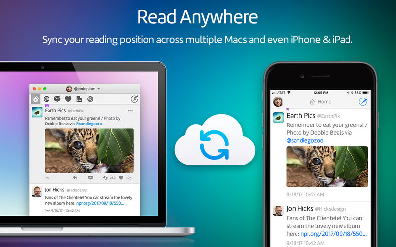 无论您是在iPhone,iPad还是其他Mac上使用Twitterrific,该应用程序都会自动同步您的阅读位置,以实现无缝的Twitter体验。