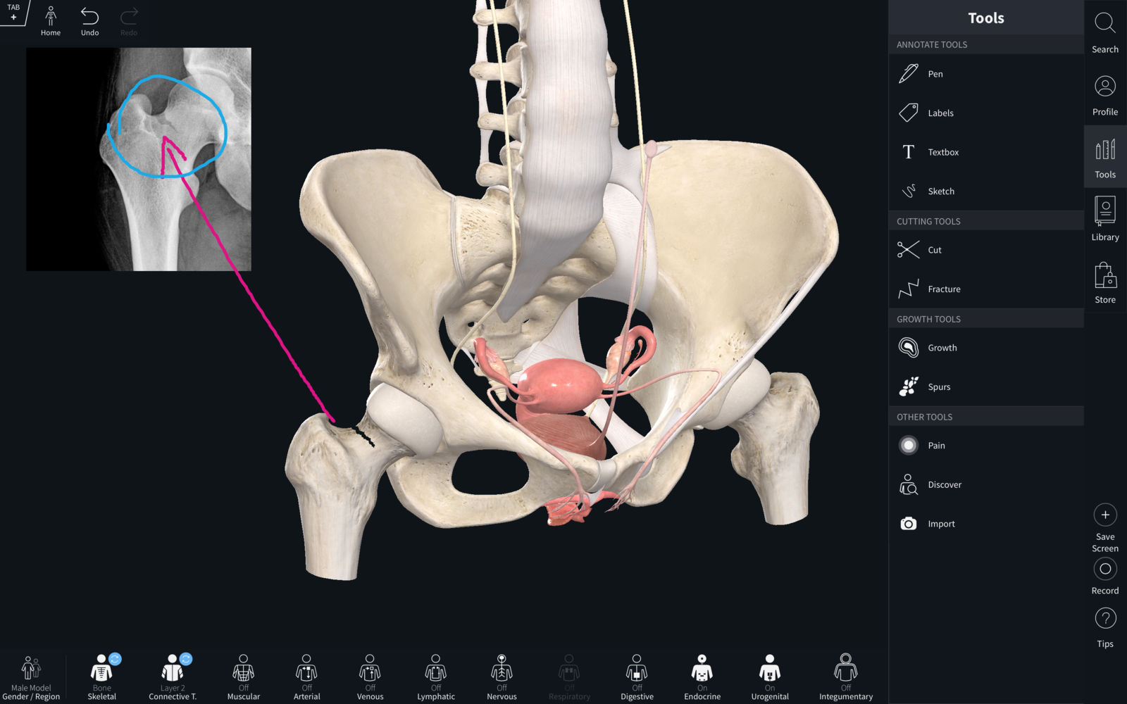 *创意工具,包括虚拟解剖,3D笔,骨折,疼痛和生长模拟