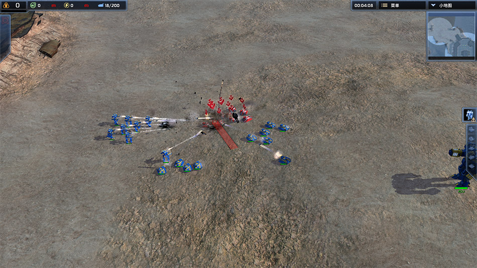 《最高指挥官2》的战役并不是只先码建筑再码兵,最后把敌人直接码死。一开始的地图会比较小,玩家需要炸掉敌人的基地或者是完成特定的任务,然后地图就会扩大,玩家得到新的单位和建筑。这样持续到整个地图都完全打开为止。不过地图扩展了之后,敌人往往会发动突袭,如果不对这种突发情况做好准备,一定会被打得满头包。这个新的设定会全面考验玩家的大局观。